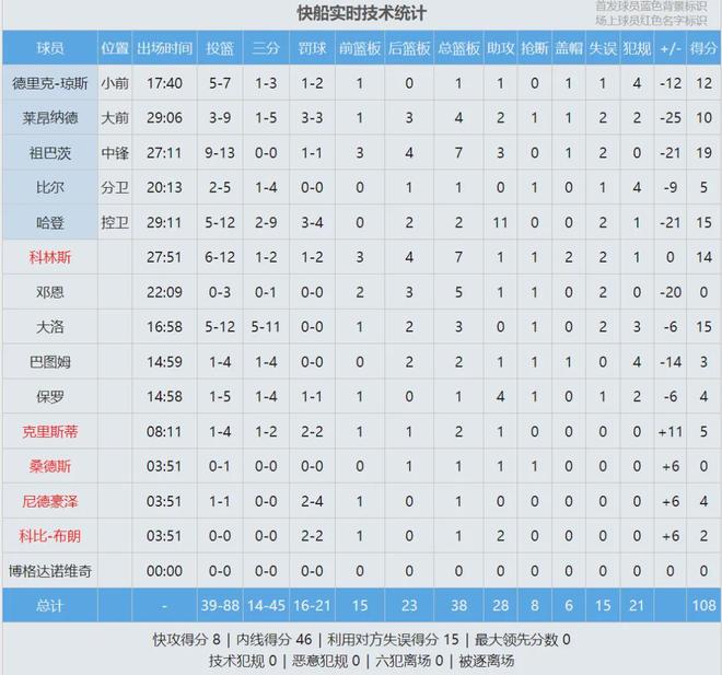 来看看快船几个新援的表现:科林斯替补出战27分51秒,投篮12中6,三分2中1,罚球2中1,得到14分7篮板1助攻1抢断1盖帽2失误,正负值0;比尔首发出战20分钟,投篮5中2,三分4中1,仅拿到5分1篮板1抢断4犯规,正负值-9。