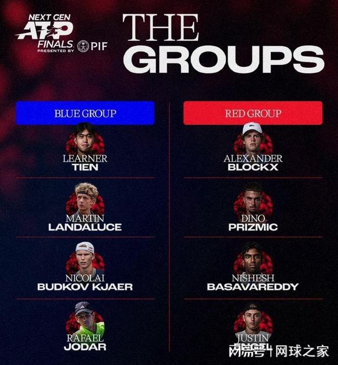 我们再来关注其它消息。北京时间今晨,2025赛季ATP新生力量总决赛(NextGen)举行分组抽签仪式,签表新鲜出炉。被抽到蓝组的四人是头号种子勒纳-钱、4号种子兰达鲁斯、5号种子布德科夫-谢尔和7号种子霍达尔;红组的四名小将是2号种子布洛克斯、3号种子普里兹米奇、6号种子巴萨瓦雷迪和8号种子恩格尔。两个小组将分别进行循环赛,小组前两名晋级四强,然后再进行交叉淘汰赛,获胜的两人争夺最后的冠军。比赛将于12月17--21日在沙特阿拉伯的吉达举行。